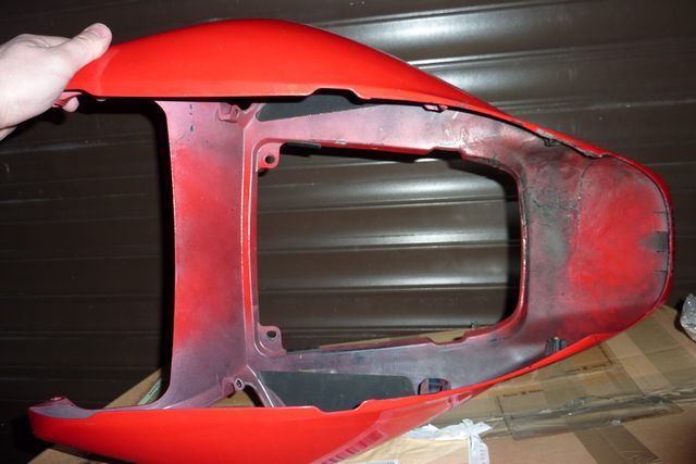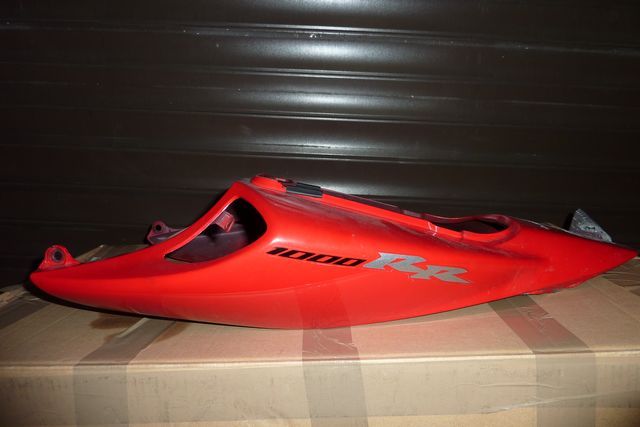 Sprzedam zadupek oryginalny od 1000RR 2007 koloru czerownego - z wierzchu ma mala ryske po prawej stronie na samym rogu i stopione jedno mocowanie wewnetrzne od lampy poza tym z wierzchu stan bardzo dobry - sprzedaje bo kupilem nowy zadupek