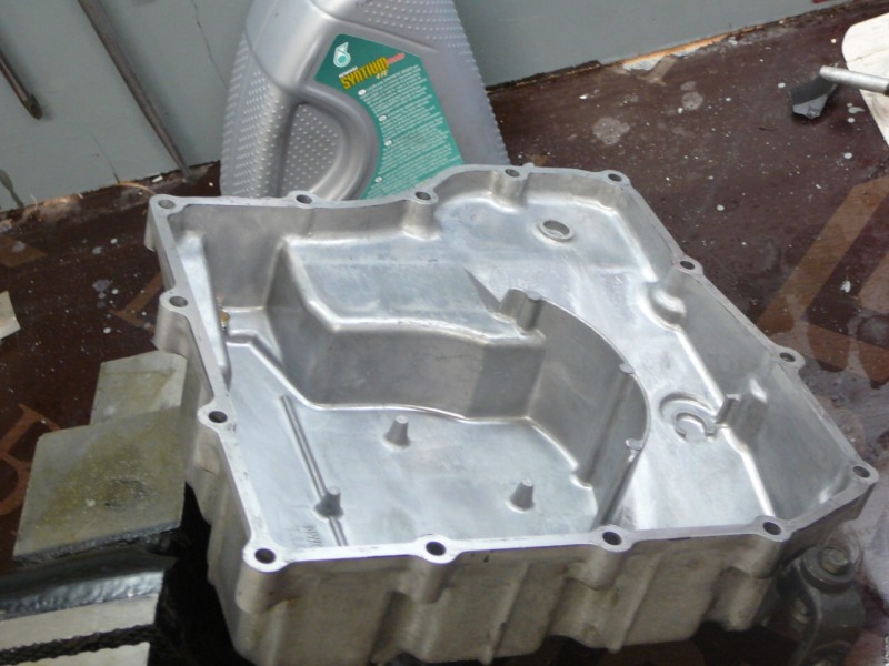 zdemontowana miska olejowa widok od spodu na bebechy
