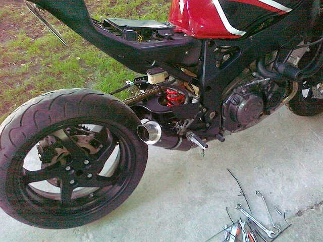 Mam już w garażu wahacz od VFR RC36 II i od CB 1000, będę próbował jakoś wsadzić tego od CB dużo lepiej to wygląda... tylko jest też jakieś 2-3cm węższy niż od VFR-y więc jakieś tuleje będzie trzeba chyba kombinować.