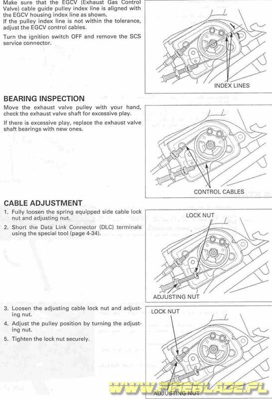 W pierwszym kroku zrobić mostek na DLC, włączyć zapłon i po ruszeniu exupa skontrolować czy kreski (na kółku i na obudowie) się zgrywają. Jeśli nie to należy wyregulować linki. U mnie kreski odbiegają od normy grubo ponad centymetr !!.
