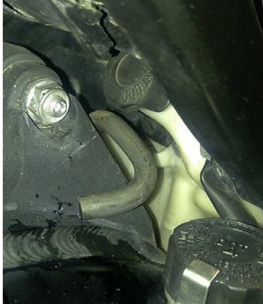 ze zbiorniczka idą dwa wężyki, jeden spod korka wlewu do płynu chłodniczego a drugi przelew i on idzie gdzieś przeważnie w okolicach stopki oczywiście na pusto
