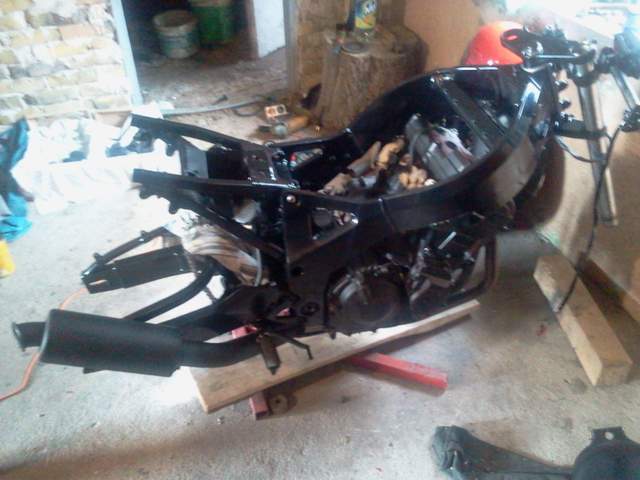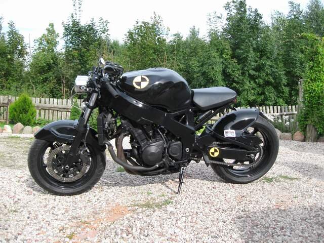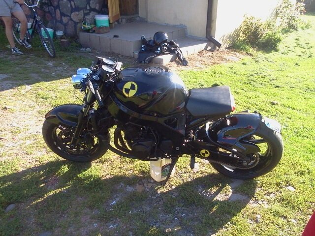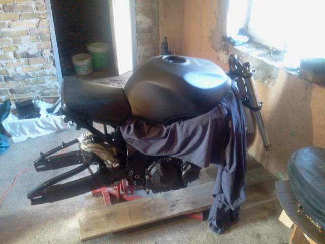 moto miało byc gotowe na nast sezon dopiero bo ojciec ostro wjeżdżał że mam nie jeżdzic itd bo prawie byłem na tamtym swiecie ale tak jakos pogoda byla i troche kasy i zmotałem go i juz obecnie mam +400km za sobą w tym sezonie. Tłumik Viper obcinalem obracałem skracałem bebechy i składałem spowrotem potem malowanie i jest jak jest. przy odpuszczaniu strzela i bulgocze jak diabeł na przeglądzie nic nie czepiali sie ale sam słysze ze jest glosny tlumik ma ok 34-36cm dlugosci teraz. Pozdrawiam. A blotnik taki wlasnie mial byc masywny zeby moto było jakby bardziej krępe tylko z uchwytami pomodze bo deko krzywo jest ale.