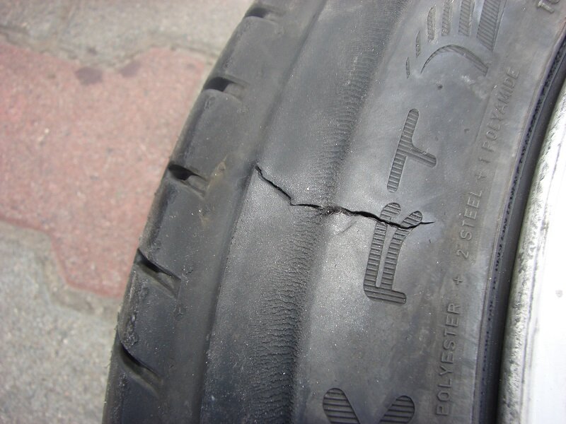 Przyczyną uszkodzenia opony było najechanie na przedmiot, który uszkodził bądź naruszył ścianę boczną. Mogło do tego dojść dużo wcześniej nim nastąpił tzw wystrzał.
