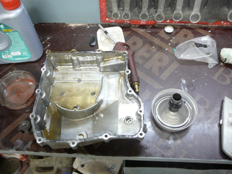 zdemontowana miska olejowa widok od spodu na bebechy