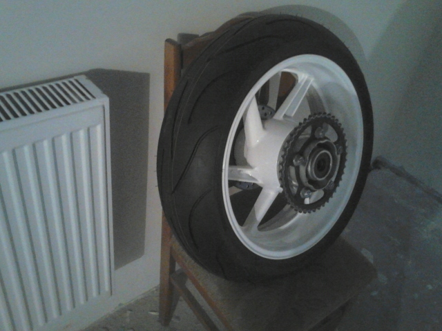Ciąg dalszy nastąpi od jutra. Na przednią felgę nowa oponka i lakierek w kolorze białym o ile będę miał czas bo mam do polakierowania jeszcze F4, F3, bandita i VN 1500 a z nim sporo zabawy bo kość słoniowa z bordo i szparunki. A i pokaże jeszcze zdjęcie z lakierowania kolegi CBR F2