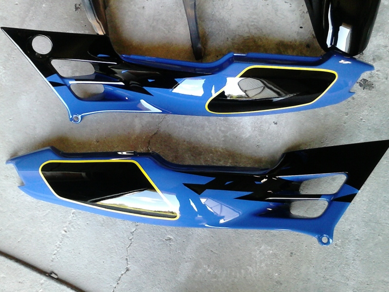 W lusterkach widać super, dotąd męczyłem i przymierzałem aż wyszło perfekcyjnie a specjalnie do tego celu kupiłem 2komplety lusterek. Pierwsze były od f4 ale były za szerokie i jakoś dziwnie było przez nie widać potem kupiłem te od 929 z i dorobiłem uchwyty z uszami pod odpowiednim kątem i wyszło super. Co do szyby to nie wiem co będę z nią robił bo na pewno nie chce przezroczystej. No robiłem kilka ciekawych projektów tylko musze poszukac fotki. Na hondzie którą pokazałem wyżej naklejką jest tylko skrzydełko na baku reszta jest robione lakierem. Wszystko niebieskie żółte i czarne było oklejane taśmą szparunek na zadupku i te wzorki z przodu zadupka też a to dla tego że klient nie mógł znaleźć naklejek do takiego typu lakierowania a jest to model lakierowania na produkcje USA.
