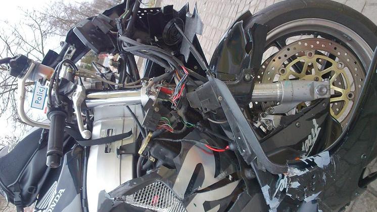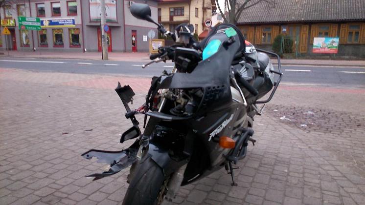 Witam serdecznie. Suchy asfalt, temperatura na plusie, nie lubię gdy w zbiorniku jest sucho wiec powoli wyjechałem na pierwsze w tym roku tankowanie. Niestety, nawet zimą kierowcy puszek nie mają do nas respektu. Prosta droga, powolna prędkość, kierowca puszki myśli że zdąży skręcić w lewo i niestety nie zdążył. Z bardzo bliska zbadałem strukturę jego lakieru na drzwiach:). Kierowca puszki stwierdził że skoro już miał bieg zapięty to tylko dodał gazu. Ja poobijany, moto rozwalone, żeby było ciekawiej całość wydarzyła się pod samą KMP:) oto kilka fotek, doradźcie czy warto go jeszcze reanimować czy sprzedać w całości.