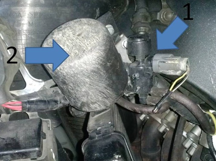 Co to może być za część z lewej strony nad chłodnicą w 1000rr 2004r SC57? Co jest pod "1" a co pod "2"? Za co te elementy odpowiadają w motocyklu?