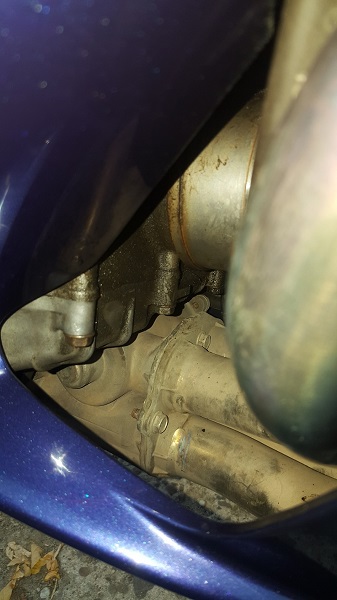 Ogólnie dopóki nie umyjesz tego silnika to raczej nie sprawdzisz gdzie cieknie i czemu. niech gościu ściąga owiewki kupi akrę czy coś i myje.