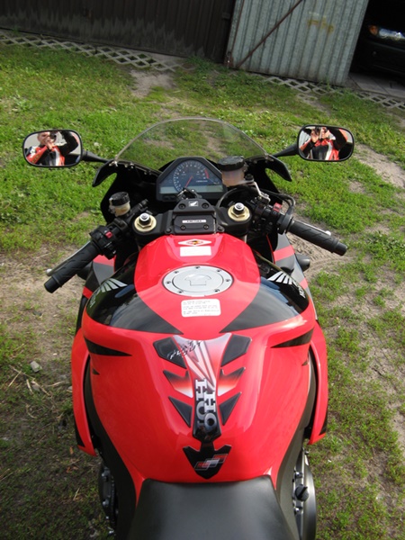 Od końca maja tego roku mam przyjemność użytkować tą oto Hondę :D Miałem już wcześniej doświadczenia z motocyklami Honda mianowicie mój brat posiadał najpierw CBR 600 F3 1998 r. ,później CBR 600 RR 2003 r. no i CBR 1000 RR 2005 r. Ja natomiast byłem właścicielem najpierw Suzuki GSX-R 600 2004 r. , a później Yamaha R1 2008 r. Szczerze mówiąc planowałem kupno Suzuki GSX-R 1000 K8 no ale że trafił się fajny egzemplarz więc czemu nie i kupiłem Hondę :D Motocykl z małym przebiegiem cały w oryginale tak jak szukałem jeszcze na oponach od nowości :)