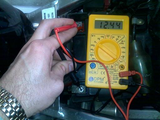 3. Odpal moto i sprawdź napięcie na akumulatorze winno być ok. 14 V (obroty 1,5-2 k/min.).