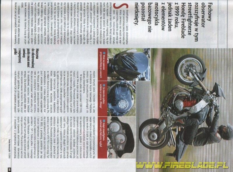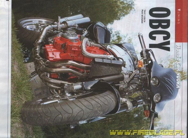 W ,,Swiece Motocykli'' tak ok trzy lata temu byl artykul o 900RR Streetfighter wlasnie z takim wachaczem. Widzialem ja na Motorbike Show chyba potem. Szukalem cos o niej na necie ale bez powodzenia. Moze ktos kojarzy, wachacz od VFR, uciety Termi z Ducati pod silnikiem, malowanie granatowe w blyskawice jakies.