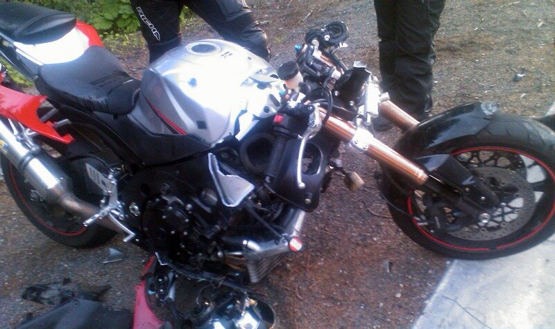 ) a na koniec moich wypocin daje foty co zostalo z praktycznie nowej (bez gleb) k7 przy czolowce w r1 przy ok 50km/h (r1 cala oprocz lag