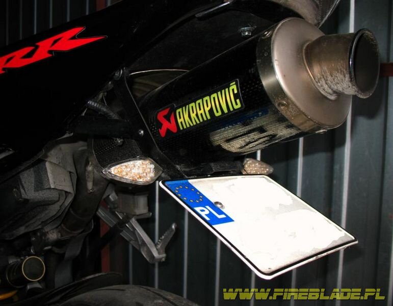 a ja przerobiłem poprzednie mocowanie tablicy które było przykręcone do wydechu i zrobiłem coś na wzór tego Jardine :) Samo mocowanie, bez podświetlania, składa się z 5 elementów z czego 4 zrobione są z płaskownika aluminiowego 25x2mm a jeden element (sam uchwyt tablicy) zrobiony z blachy stalowej (jak ktoś ma to lepsza będzie kwasówka albo alu). Wszystko jest ze sobą poskręcane śrubami i nakrętkami samokontrującymi z kwasówki. Można też połączyć wszystko nitami. Szkoda że nie zrobiłem zdjęć jak tworzyłem to mocowanie ale śpieszyłem się i nie pomyślałem o tym. Trochę zabawy z tym było żeby odpowiednio podoginać te płaskowniki alu i wszystko ładnie wykończyć ale przynajmniej wygląda to o wiele lepiej niż oryginalne mocowanie tablicy i to co miałem wcześniej :)