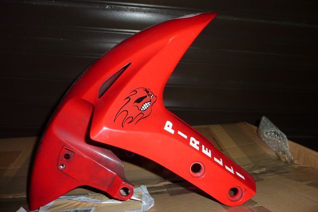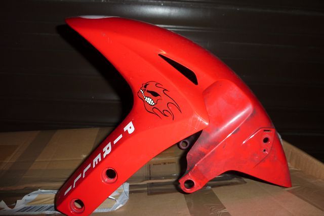 Oryginalny czerwony blotnik z 1000RR 2007 lekko pekniety ( pech chcial ze zapomnialem zdjac blokade kola i tak sie skonczylo :/ ) - po odgjeciu palcem widac peknieciea po za tym idealny...