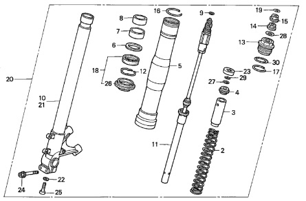 Producent nie przewiduje wymiany jedynie dolnej (peknietej) czesci, tylko komplet - tak jak na ponizszej fiszce - element 10 - prawa, 21 - lewa laga. Wiem ze w niektorych modelach motocykli da sie te dwa elementy rozdzielic - sa one zazwyczaj skrecane, ale jak jest w sc57 nie wiem bo nigdy nie mialem potrzeby sie do tego dobierac.