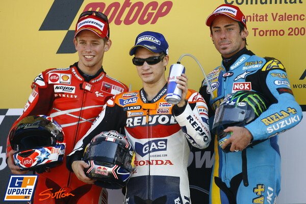 W niesamowitym stylu Dany Pedrosa wygrał ostatni wyścig sezonu 2007 w Walencji - na swoim terenie. Przyjechał na metę 5,5 sek przed Mistrzem 2007 Stonerem.