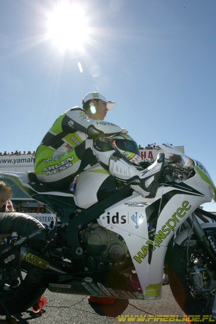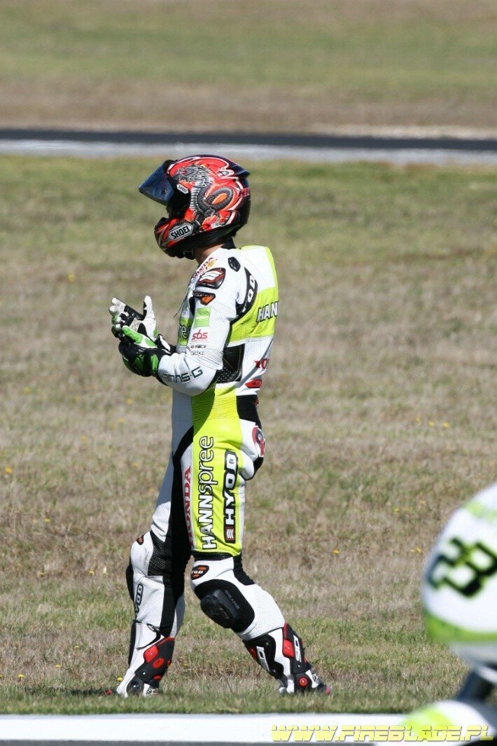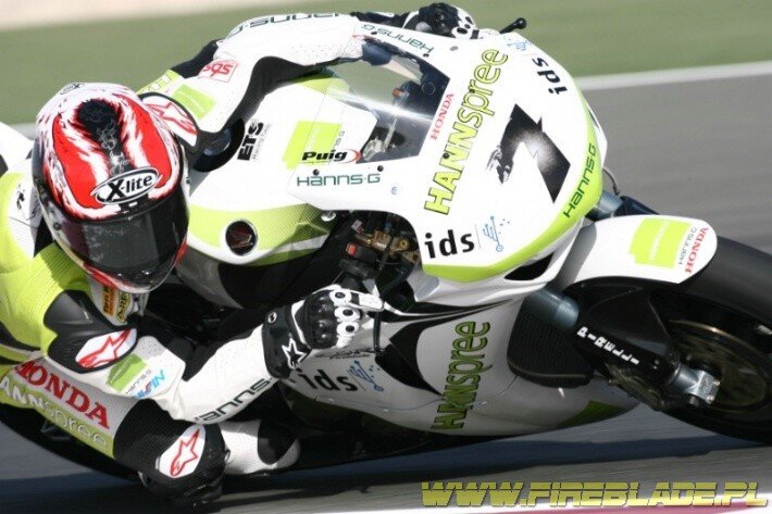 W swoim zaledwie 4 wyścigu w SBK na Phillip Island CHECA zajął doskonałe 2 miejsce na Hondzie Fireblade 2008! KIYONARI był 6 po zaciętej walce z NEUKIRCHNERem! ¦wietny wynik zważywszy że nowy motocykl dostali niedawno i nie mieli czasu na przedsezonowe testy.Widać że nowa Honda 1000RR posiada potencjał jak jego odpowiednik w salonach ;) Sam wyścig moża obejrzeć na oficjalnej stronie SBK tu Phillip Island, 29 February 1-2 March 2008 Laps 22 = 97,790 Km - Time Of Race 34'35.284 - Avg. 169,637 km/h 1 T. BAYLISS AUS Ducati Xerox Team Ducati 1098 F08 Laps 22 34'35.284 2 C. CHECA ESP Hannspree Ten Kate HondaHonda CBR1000RR +1.127 3 F. NIETO ESP Team Suzuki Alstare Suzuki GSX-R1000 22 +4.395 4 R. XAUS ESP Sterilgarda Go Eleven Ducati 1098 RS 08 22 +6.621 5 M.NEUKIRCHNER GER Team Alstare Suzuki Suzuki GSX-R1000 22 +11.550 6 R. KIYONARI JPN Hannspree Ten Kate HondaHonda CBR1000RR 22 +11.620 7 N.HAGA JPN Yamaha Motor Italia WSB Yamaha YZF-R1 22 +12.049 8 G.LAVILLA ESP Ventaxia VK Honda Honda CBR1000RR 22 +12.134 9 R. HOLLAND AUS D.F. Racing Honda CBR1000RR 22 +13.462 10 K. MUGGERIDGE AUS D.F. Racing Honda CBR1000RR 22 +15.519 11 K. SOFUOGLU TUR Hannspree Ten Kate HondaH Jor.nda CBR1000RR 22 +16.225 12 D. CHECA ESP Yamaha France Ipone GMTY 9a4maha YZF-R1 22 +21.959 13 S. GIMBERT FRA Yamaha France Ipone GMTY 9a4maha YZF-R1 22 +21.989 14 M.TAMADA JPN Kawasaki PSG-1 Corse Kawasaki ZX-10R 22 +29.106 15 S. NAKATOMI JPN YZF Yamaha Yamaha YZF-R1 22 +29.219 16 R. ROLFO ITA Hannspree Honda Althea Honda CBR1000RR 22 +32.994 17 R. LACONI FRA Kawasaki PSG-1 Corse Kawasaki ZX-10R 22 +34.380 18 J. SMRZ CZE Guandalini Racing by Grifo'sDucati 1098 RS 08 22 +42.537 19 M.FABRIZIO ITA Ducati Xerox Team Ducati 1098 F08 22 +46.623 20 L. LANZI ITA R.G. Team Ducati 1098 RS 08 22 +47.030 21 A. BADOVINI ITA Team Pedercini Kawasaki ZX-10R 22 +1'08.601 -------------------------------Not Classified:----------------------------- RET M.BIAGGI ITA Sterilgarda Go Eleven Ducati 1098 RS 08 6 16 Laps RET T. CORSER AUS Yamaha Motor Italia WSB Yamaha YZF-R1 4 18 Laps RET S. AOYAMA JPN Alto Evolution Honda SuperbHiokenda CBR1000RR 3 19 Laps RET L. NAPOLEONE FRA Grillini PBR Team Yamaha YZF-R1 3 19 Laps |